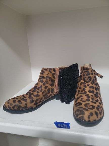 LOT 922 - Leopard print booties size 9,and small black beaded clutch