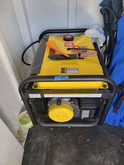 LOT 17 - Yellow champion dual fuel generator, very good condition in storm shelter