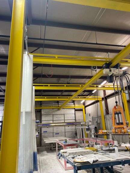 Yellow industrial metal frame measuring approximately 45ft in length, 12ft in width, and 12ft in height. Frame includes suspended beams suitable for material handling or industrial processes. Appears to include support for modular hanging systems. No additional equipment or accessories included beyond the frame itself.