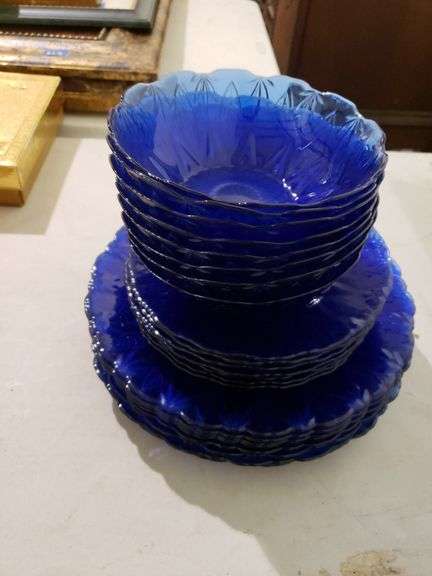 LOT 389 - 8 pc set of blue dishes